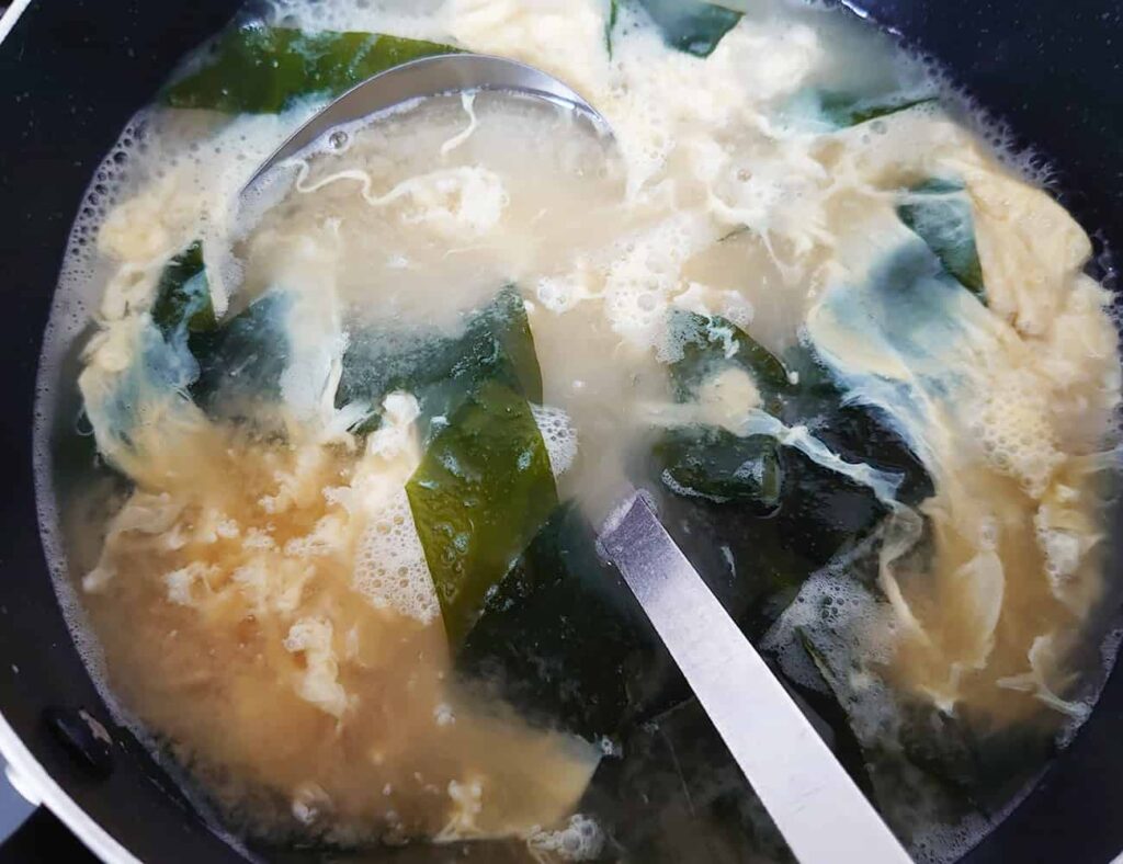 定番 わかめ, 卵 わかめと卵の味噌汁 乾燥わかめで手軽に!ほっとする定番お袋の味 調理時間 : 5分 カロリー: 1人前 79kal 2023-08-14 材料 出汁 400ml乾燥わかめ 5g卵 1個味噌 適量 おすすめ味噌 合わせ味噌白味噌豆味噌 下準備 1.卵は器でときほぐしておく。 調理方法 1.小鍋に出汁を入れて火にかける。2.ふつふつとしたら、わかめを入れる。3.すぐに卵液を菜箸に添えて流し入れ、10秒ほど煮込んで火を止める。4.器に盛って完成。 ポイント 定番なのに栄養満点! 美味しくてホッとする、受け継がれ続けるお味噌汁。 その他の写真 関連レシピ ひと手間 20分 kcal 真だち(たち・白子)の味噌汁 旬の味覚のご馳走味噌汁。 定番 10分 165kcal じゃがいもと卵の味噌汁 優しい味わいの味噌汁。 定番 15分 kcal ちぢみほうれん草と溶き卵の味噌汁 葉が肉厚なのでコクのある味噌にも負けない味わい。 出汁いらず 20分 kcal キムチチゲ風味噌汁 キムチゲと呼ぼう! ひと手間 10分 106kcal ニラと卵の味噌汁 定番にちょっぴりスパイス。 定番 5分 43kcal レタスと生わかめの味噌汁 超時短で手軽、ヘルシー。旬のもので作ってみよう。